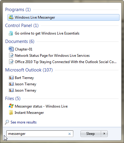 Once done, you can either remain in Messenger or close out of it. Ether way, the next time you log on or restart your computer, Live Messenger will no longer startup automatically. Instead, you can manually start it by opening up your Start Menu and type messenger and then <ENTER>.
