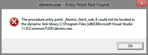It seems Microsoft is well aware of this issue and has issued a patch for Visual Studio 2012. It apparently has something to do with the Office 15 preview breaking your VS2012 install… you’d think Microsoft would have tested this and fixed it before release, but I guess not.